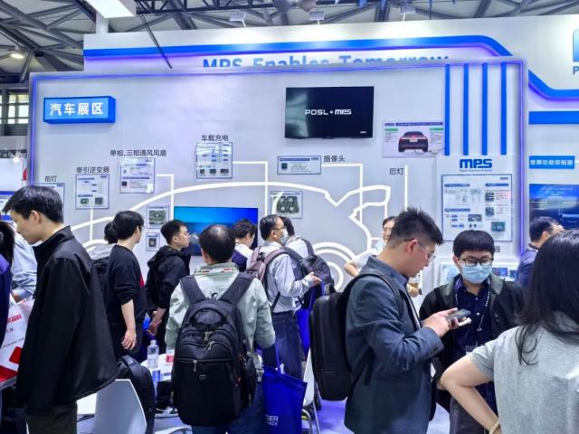 展览现场展示 MPS 的 48V 提供了两个区域控制系统的电源解决方案 E-fuse& 智能 High-side 电源开关 MPQ588X,一个 75V 非隔离 LLC-DCX 用于前端保护的MPC12XXX MPQ588X。