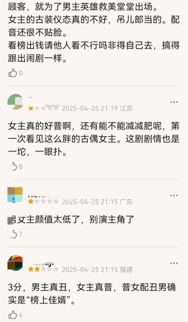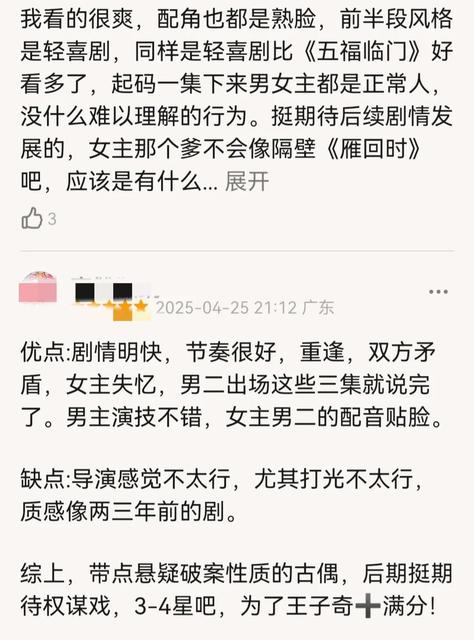 总的来说,大量观众对古偶的长相非常挑剔,但其实王子奇并不普通。这部剧的古装头套有点不适合他。看看接下来的剧有没有调整。卢昱晓的妆容有点像《五福临门》。虽然她被批评走路的姿势,但这部剧并没有看到太多的改进。