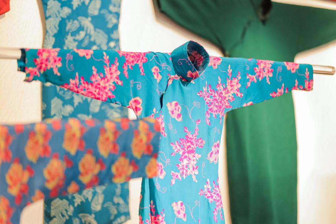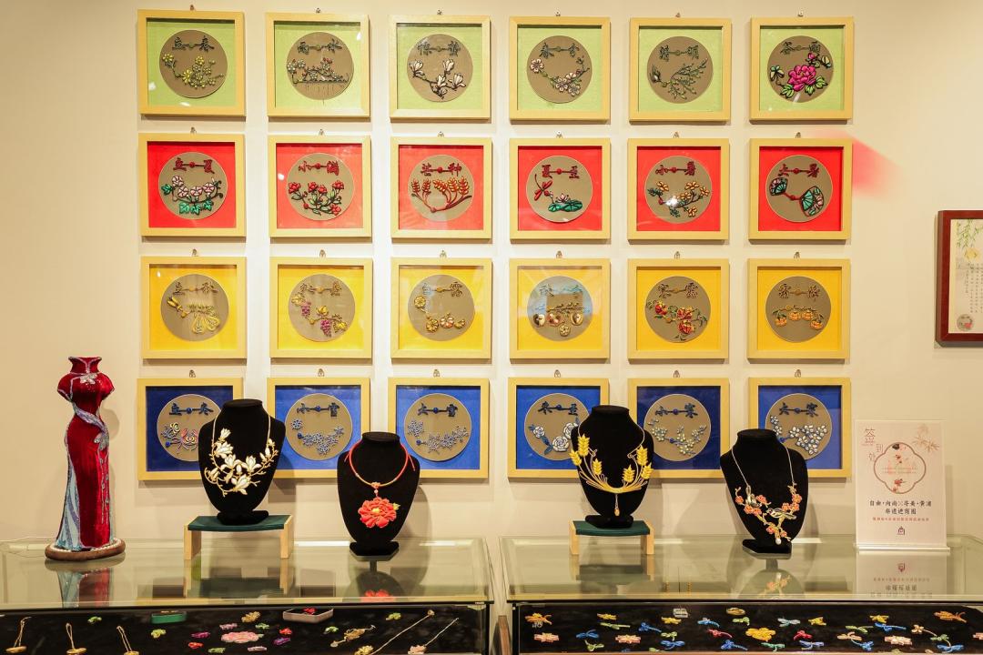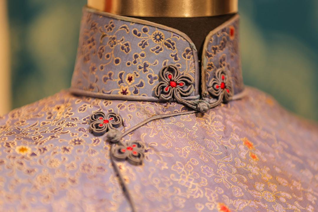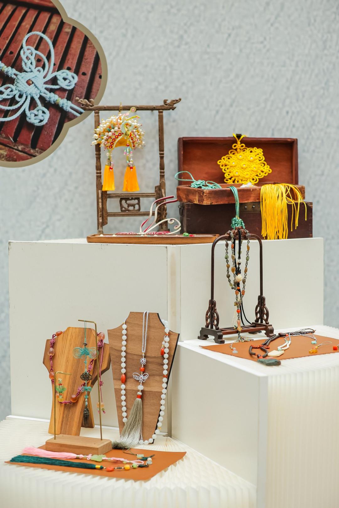 节目结束后,与会嘉宾前往旗袍×参观非遗创新空间,客人仿佛穿越到了20世纪30年代的上海。展览区以“生活中的旗袍”为主题,再现了当初人们的着装习惯。一件旗袍,一个故事,风格由直到曲线,布料和图案也逐渐国际化。传统的盘扣常常被创造成时尚饰品,而非遗盘扣展区则显示出这种技巧的无限可能。刘秋雁介绍:“每一个盘扣都是一个文化密码,我们希望通过现代化的设计,让它从衣服‘走’到生活。”
