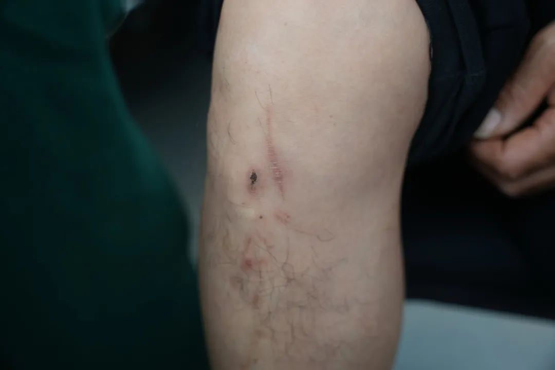 看到那个女人被送往医院后,他默默地离开了现场。“当时我什么都没想,只是觉得身体湿透了,赶紧回家换上干净的衣服。”他笑着说。那天晚上,刘传强的室友看到他腿上有伤,及时询问,于是他向人们提到了下河救人的经历。虽然时隔半个月,但刘传强腿上被岸堤划出的许多伤口仍然清晰可见。