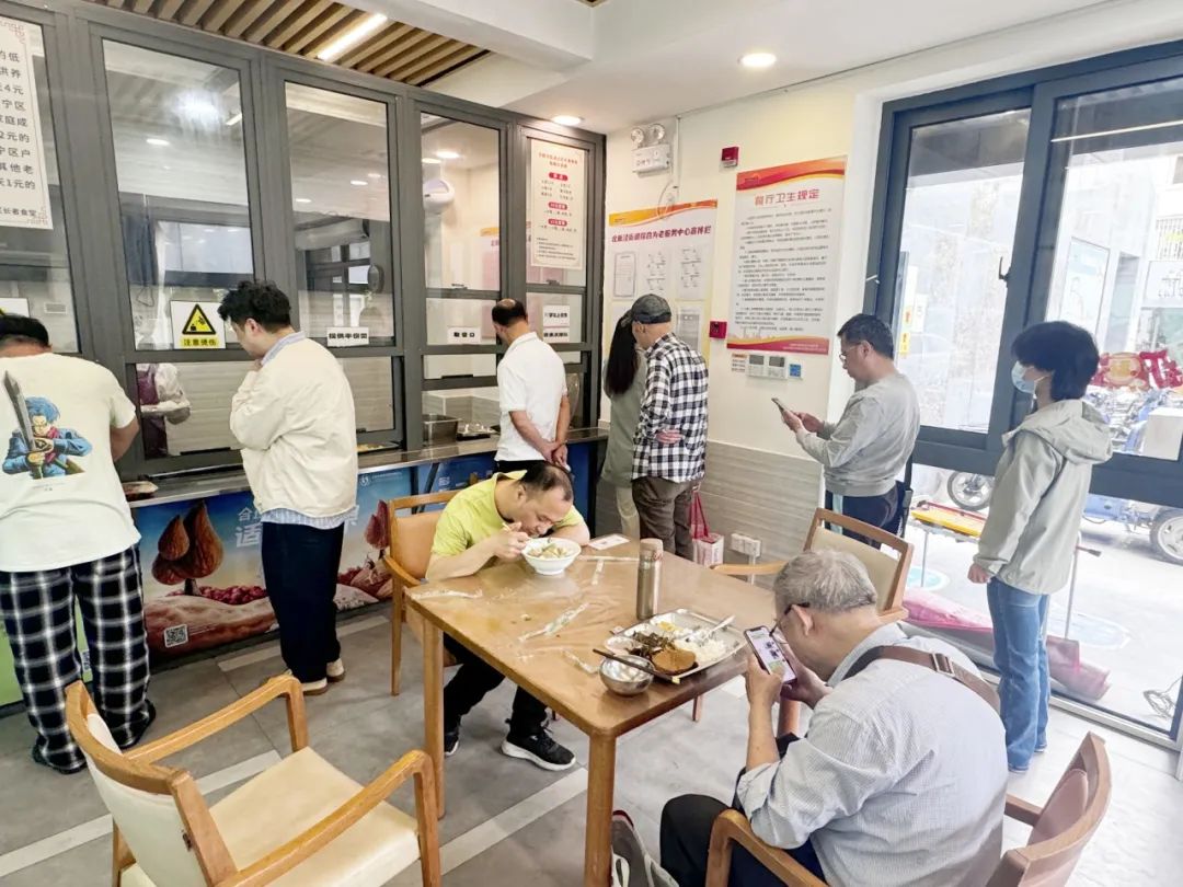 和市场一样,北新泾社区的老年食堂也是居民经常来来往往的热门场所。老年食堂位于天山西路北渔路东南角,是集日常用餐、健康管理、社交为一体的综合用餐平台。营养搭配的老年用餐、普惠亲民的价格体系、多元化的服务管理机制、温馨的老化环境深受好评。