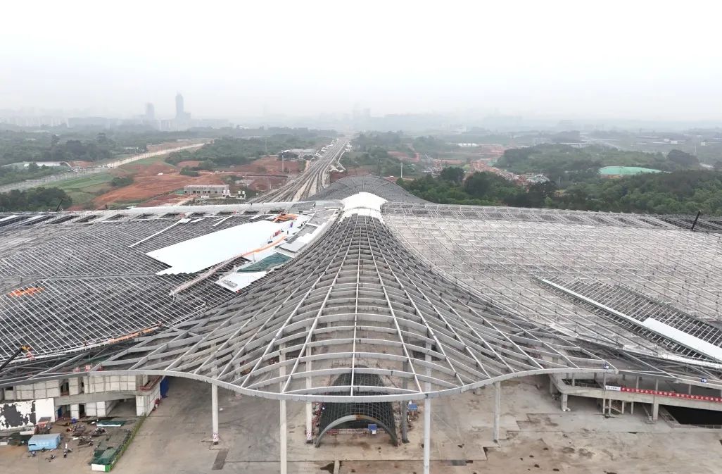 据悉,天府站将全面进入金属屋面施工、机电安装、建筑装修等施工阶段。