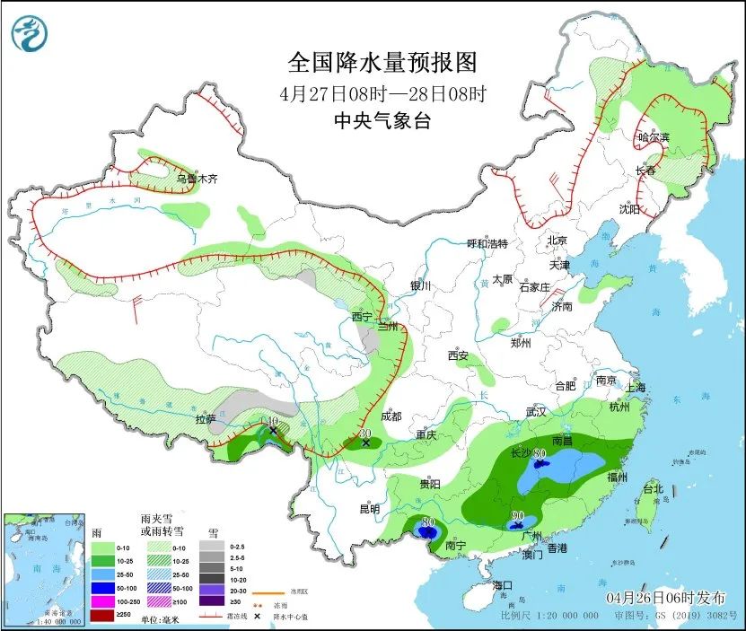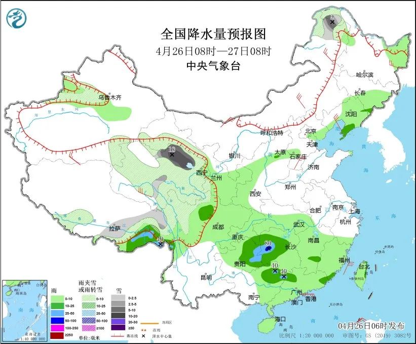 26日至29日,青海大部分地区、川西高原、西藏东部、云南西北部等地多雨多雪,高海拔山区有大到暴雪;此外,26日至27日,西藏东南部有中到大雨。