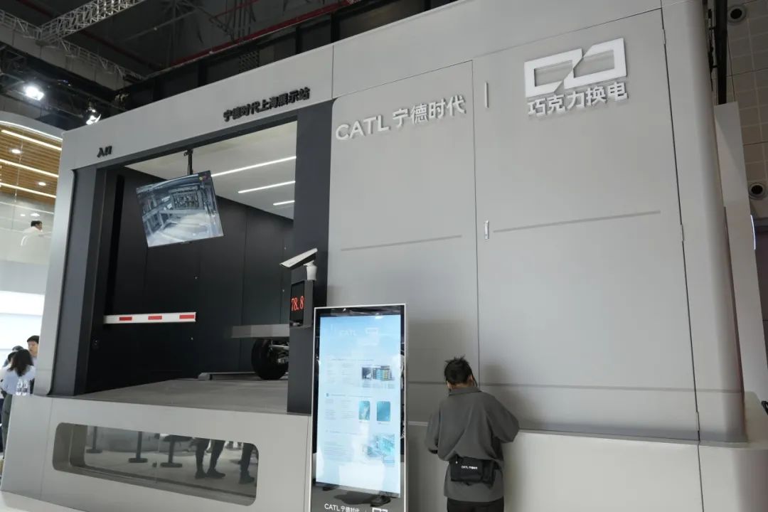 然而,在本次车展上,换电模式不再是蔚来的“一枝独秀”。宁德时代打造的巧克力换电站首次亮相,以更快的速度和更强的兼容性成为换电模式的新焦点。