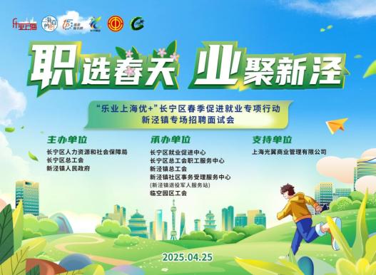 四月二十五日,长宁区人力资源和社会保障局、长宁区总工会联合新泾镇,在大融城举行“春季职选” 行业聚新泾大型线下招聘会。[详细信息]