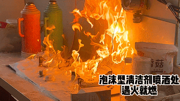 泡沫清洁剂的主要成分是乙醇,因此遇到明火易燃。