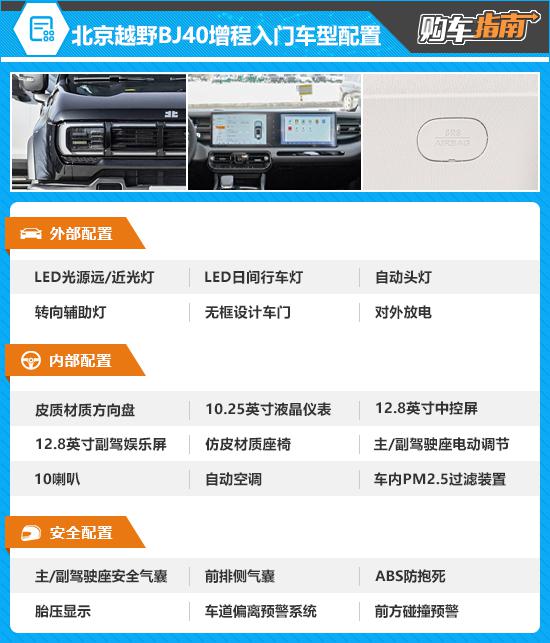 4 月 7 日本,北京越野 BJ40 增程正式上市,新车共推出。 2 款车,官方售价区间为 17.98-19.98 万元,焕新价为 15.48-17.48 万元。与此同时,官方还推出了全新礼品、充电礼品、保修礼品、金融礼品等多项购车权益(详情请咨询当地经销商)。