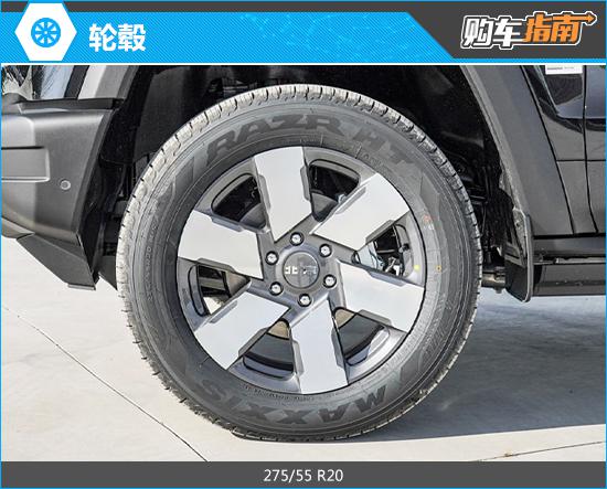 北京越野轮毂方面 BJ40 增程全系统标配 20 英尺多辐轮毂,视觉效果好,非常适合其硬核。 SUV 气场,与之匹配的轮胎规格是 275/55 R20。