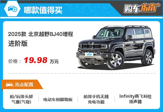 所以,对北京越野 BJ40 增加消费建议,重点推荐参考价格为 19.98 高级版万元,消费者在购买时可以优先选择。