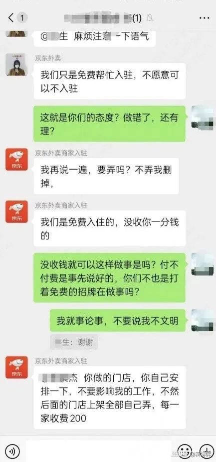 只是从商家提供的聊天记录中,我们可以看到,疑似“客服”和“商家入驻”的工作人员以“免费入驻”为由与商家协商,不知道他们是否从中获利。