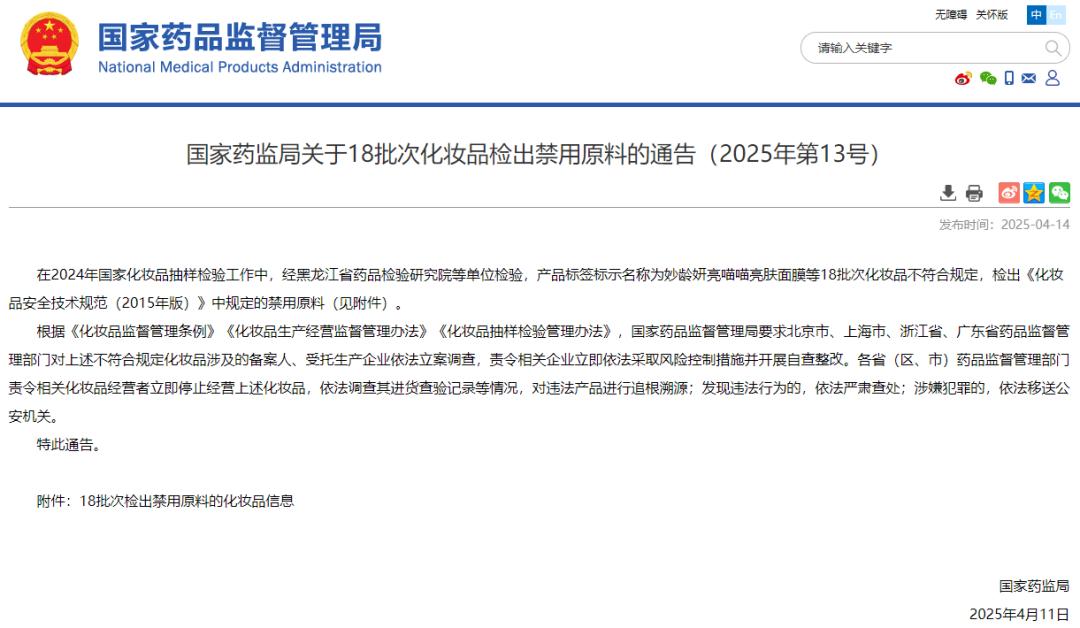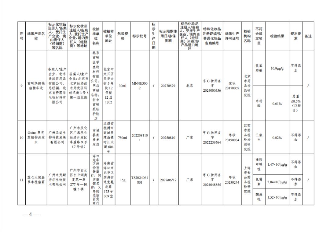 国家医药产品管理局要求北京市、上海市、浙江省、广东省医药产品管理部门依法对不符合要求的化妆品备案人和委托生产企业进行立案调查,命令相关企业立即采取风险控制措施,进行自查整改。