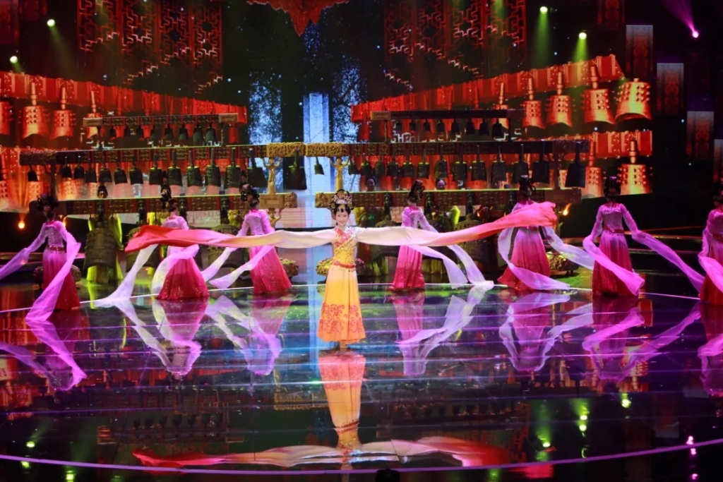 在26日下午的主场活动中,随州“传统” 开启文化旅游盛会的科技创新形式。人形机器人巡场迎宾后,沙画表演勾勒出炎帝故居、千年银杏谷、大洪山等文化旅游地标。编钟乐舞《晏子盛乐》以2700年前的礼乐再现拉开帷幕,青铜编钟与数字舞美相得益彰,再现了“华夏正音”的震撼。情景朗诵《炎帝大歌》和《汉东国皓月辉》编钟演奏,生动地诠释了“炎帝八大功绩”的文化内核。