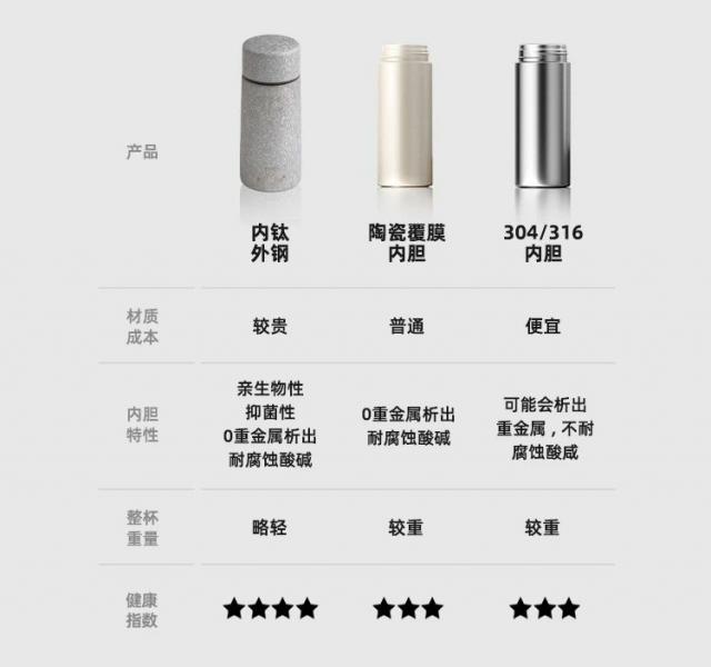 ✅与不锈钢相比,里胆是钛镀层,更健康。