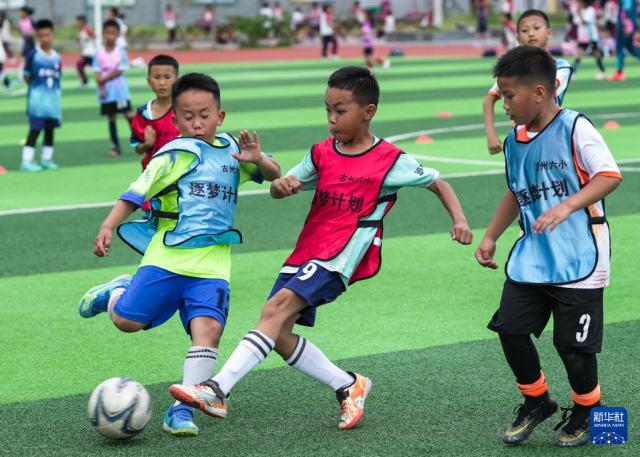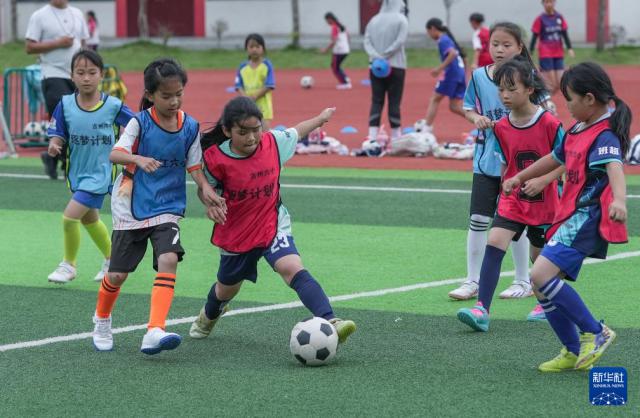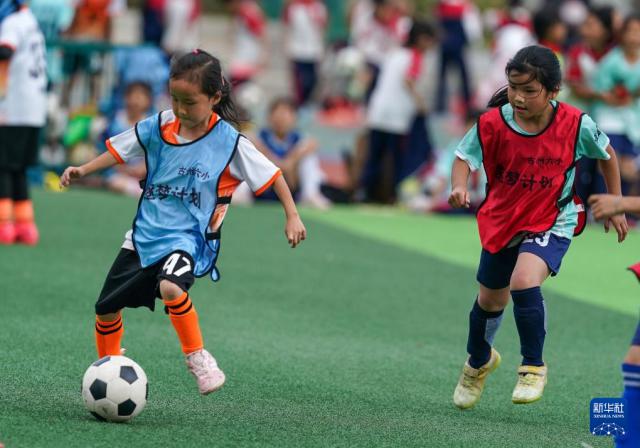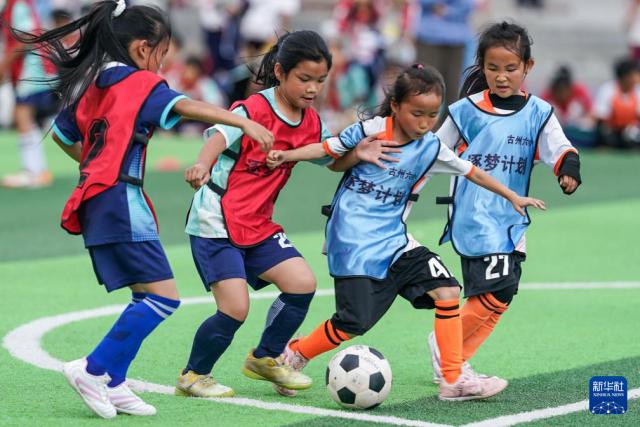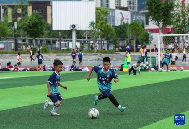 △ 4 月 25 日本,在贵州省榕江县古州镇第六小学,同学们在“班级超级”足球比赛中拼搏。新华社(王炳真摄)
