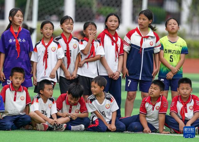 △ 4 月 25 日本,学生们在贵州省榕江县古州镇第六小学观看了“班超”足球比赛。新华社(王炳真摄)