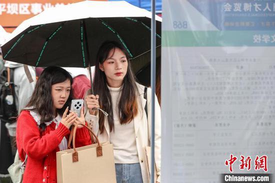 △图为求职者查看招聘信息。中新社记者 瞿宏伦 摄