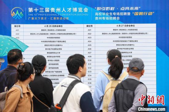△图片显示了现场参与单位的检索图,以吸引应聘者。中新社记者 瞿宏伦 摄