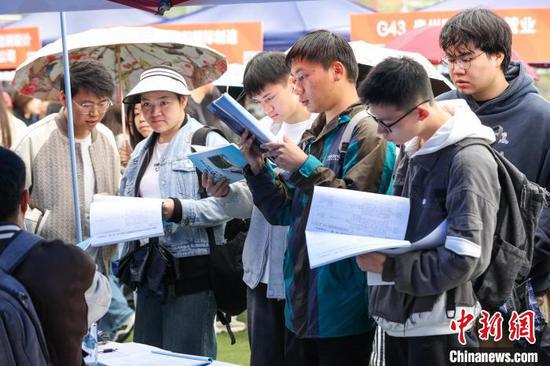 △图为求职者在招聘会上求职。中新社记者 瞿宏伦 摄