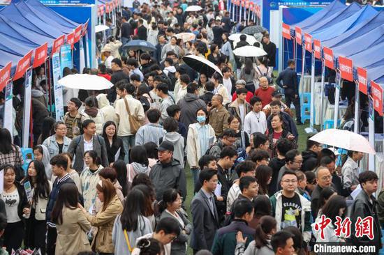 △图为招聘会现场。中新社记者 瞿宏伦 摄