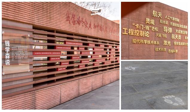 外广场由"钱学森说"语录墙和“足迹”钱学森的生活大事记构成。