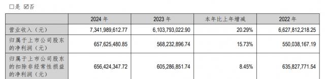 2024 年度,万和电气营业收入 73.42 亿元,同比增长 20.29%;纯利润归属于上市公司股东。 6.58 亿元,同比增长 15.73%。