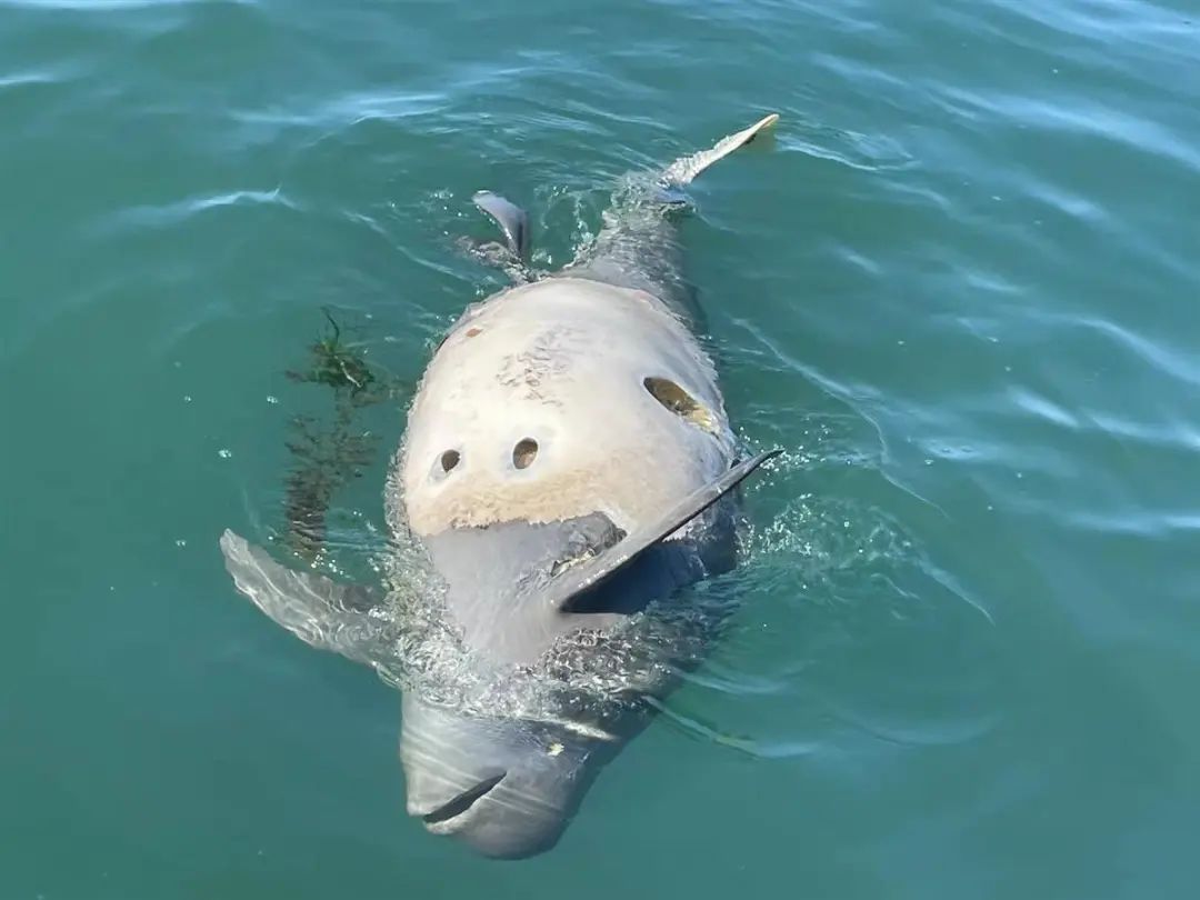 大连水域发现了一具带圆孔的江豚尸体,怀疑是鱼枪引起的,专家:死因尚不容易判断。