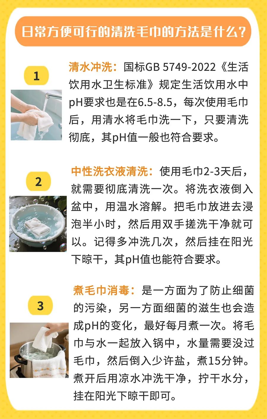 毛巾厚度:毛巾太厚,不易彻底清洗,造成残留,对pH值产生影响。