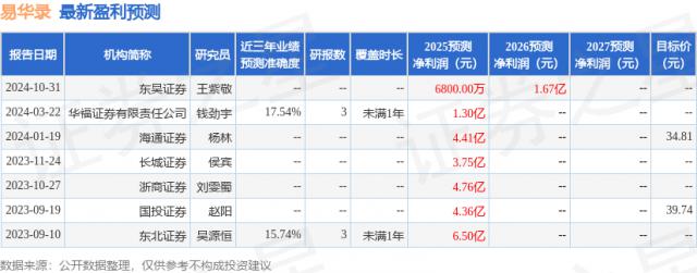 根据近三年发布的研究报告数据,华福证券有限公司钱劲宇研究员团队对该股进行了深入研究,近三年的预测准确度均为 预测17.54% 2025 年度归属净利润为利润 1.3 十亿,根据现价转换预测。 PE 为 119.44。