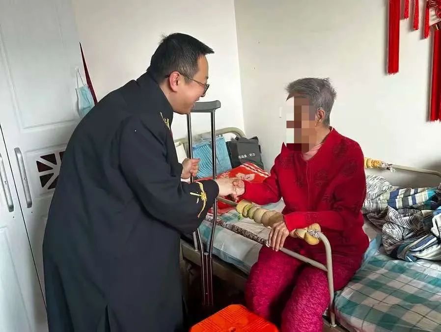 考虑到老人行动不便,得知被告夫妇以继承爷爷房产工龄对应权益为由,另行起诉奶奶和阿姨。脚伤不好的冯晓光法官决定背着国徽上门调解,尽最大努力消除家庭纠纷。