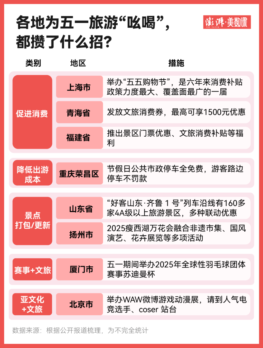据预测,今年五一假期,民航客运量约为1075人次,日均215万人次,比2024年增长8%,创下同期历史新高。从这个角度来看,各地接待的“诚意”,乘客都买了。