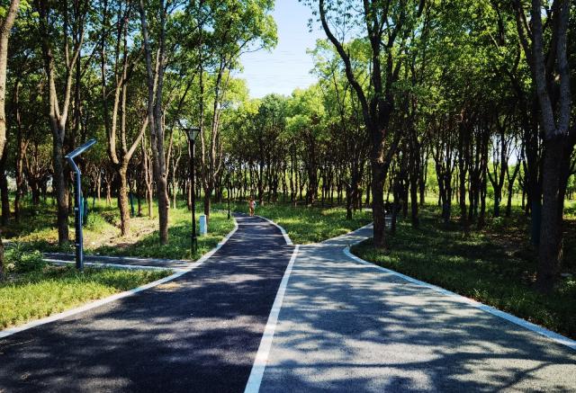 浪漫的春天,在彭渡村江川路以南、黄浦江向北的地区,这条全新的生态绿道延伸到林地深处,绿树成荫,蜿蜒的小路通幽,成为附近居民休闲散步的好地方。