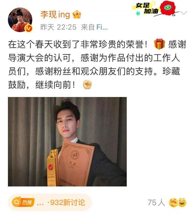 在这个春天,李现发表了一篇非常珍贵的文章!� � 感谢导演大会的认可,感谢为作品付出的工作人员,感谢粉丝和观众朋友的支持。收集激励,继续前进!
