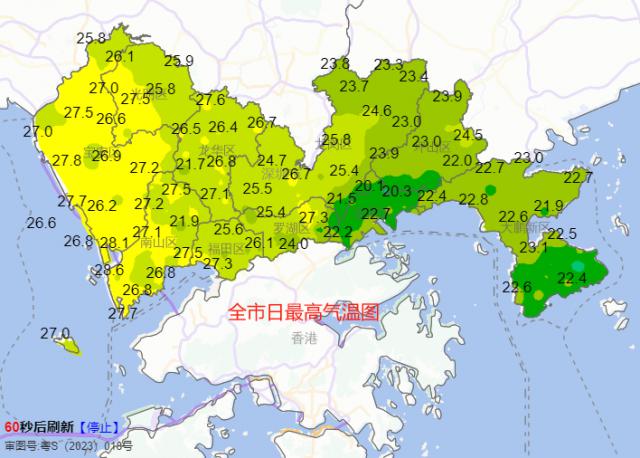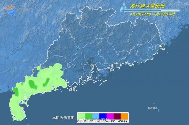 29 日,粤西市县阴天多云,阵雨分散,其他市县阴天。我省大部分市县的最高气温将介于 29~33 ℃。
