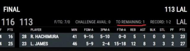 赛后,美记 Tim Reynolds 他说:“湖人队最后还有一次暂停吗?在森林狼挑战之后,数据显示他们还有一次暂停。”