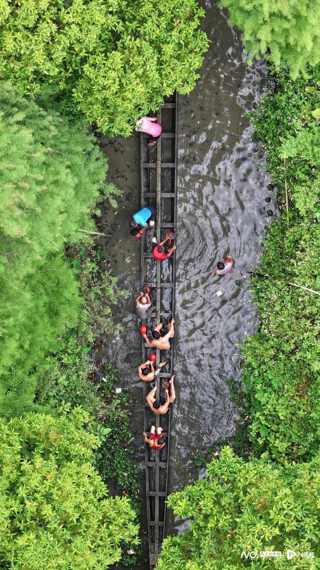20多名村民赤膊跳进沼泽