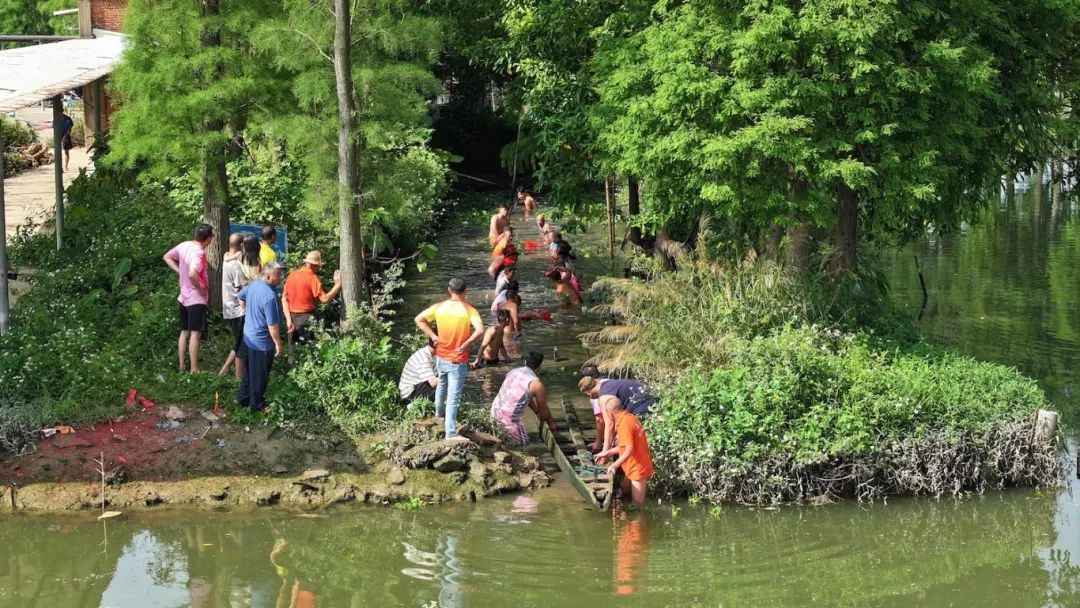 有的清理杂草,刨去污泥