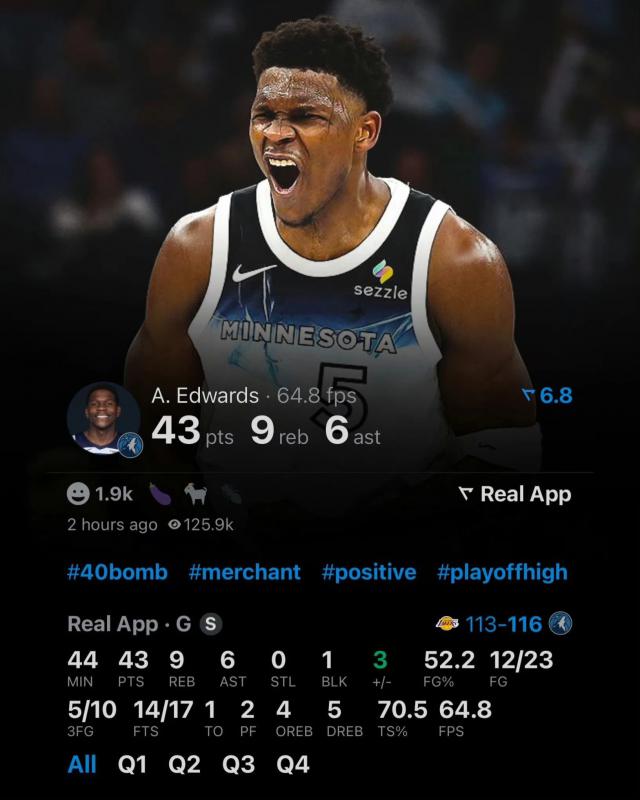 每节 13 分数,带领湖人队开局一度领先。 10 分