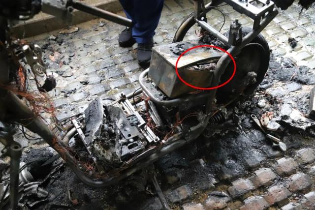 电动自行车锂电池故障 18辆车火烧连营 一片狼藉