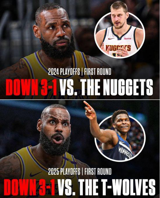 现在詹姆斯已连续两年首轮总分。 1-3 落后,去年最后总分 1-4 被掘金淘汰。湖人队今年再次陷入总分 1-3 在困境中,詹姆斯说:“你不会想着连续三场比赛,你必须只想着先赢下一场比赛。”