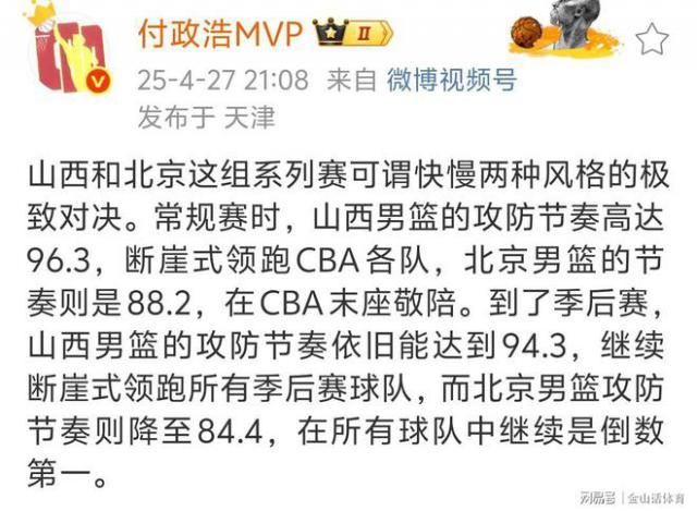 值得注意的是,1/4 山西队决赛 3 比 0 狂扫广东,而首钢则是与北控作战。 4 局晋升。为何 1/4 在决赛中,每场比赛都击败了广东队的山西,在半决赛的首场比赛中被首钢斩下?著名新闻家付政浩认为,山西和北京这一系列赛,是快慢两种风格的极致对战。山西男篮一直热衷于跑轰玩法,而首钢则是 CBA 最慢节奏的球队。首钢队战胜山西的关键在于将比赛拖入阵地战。