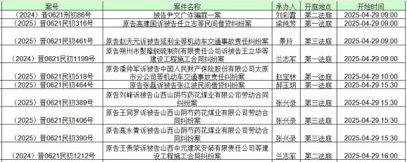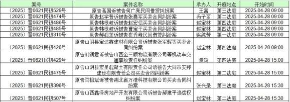 山阴县人民法院开庭公告(4月27日至4月30日)