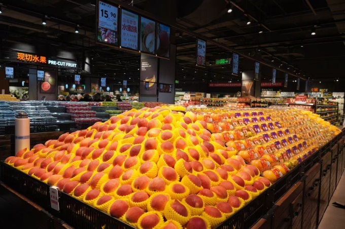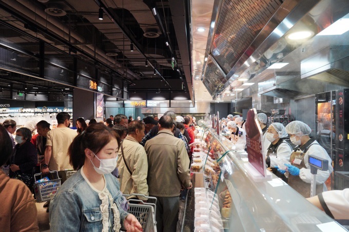 在热带水果区新成立的猫山王榴莲柜台前,年轻消费者排起了长队。“现在,你可以在家里买到整个金色的榴莲。眼见为实,买起来更舒服。”拥有榴莲的90后顾客林小姐高兴地说。