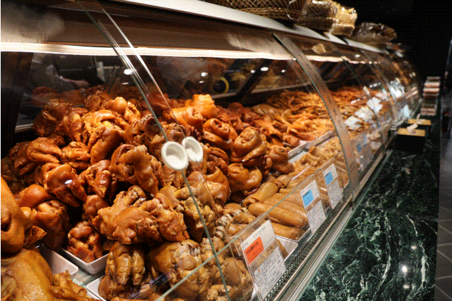 对于熟食和糕点区域的大理石台面和插件大理石来说,在保证统一风格、提升空间风格的同时,也非常容易打理和清洁,同时也能有效保护设备,防止被购物车划伤和磕碰。