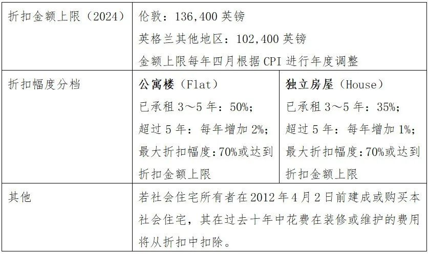 表2: 英格兰社会住宅购买权方案下的折扣 资料来源:英国政府官网https://www.gov.uk/housing-local-and-community/council-housing-association