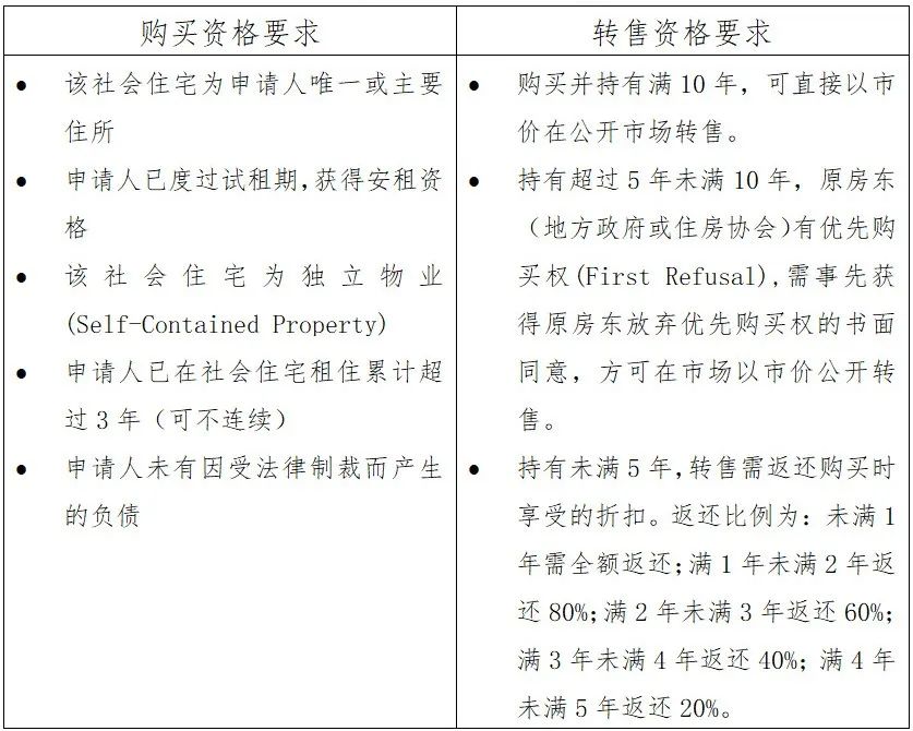 表1:购买和转售社会住宅的资格要求 资料来源:英国政府官网https://www.gov.uk/housing-local-and-community/council-housing-association