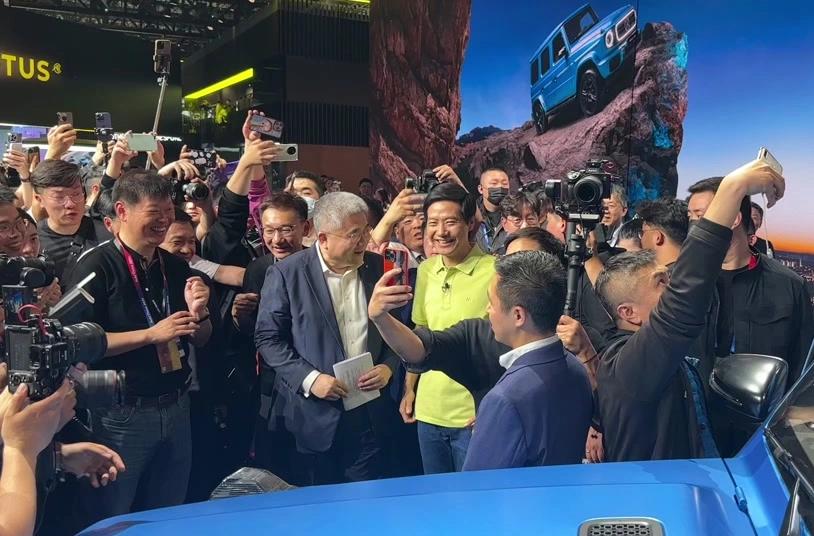 从这次车展媒体日为数不多的“著名场景”中,我们也可以看到这一点:无论是蔚来创始人李斌还是乐道 L90 前备舱假装钓鱼,或者理想汽车创始人李想从新车型中获得 Mega 旋转式座椅悠闲地走上舞台,都是为了向大众展示商品独特的差异化设计亮点。