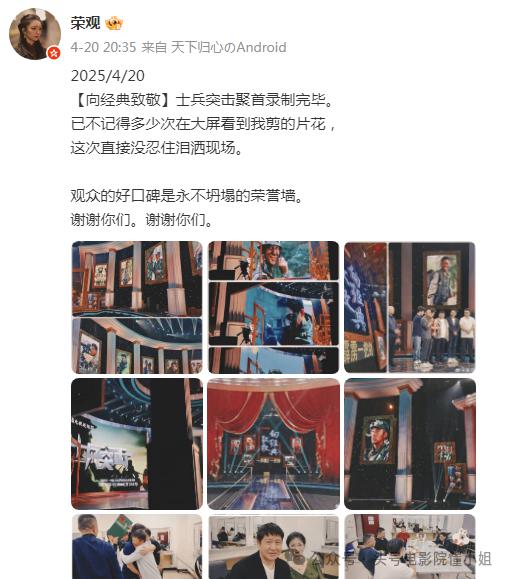 一些网民晒出了现场的照片,表示节目正在进行。 4 月 20 日记录完成后,在大屏幕上看到自己剪下的片花,泪流满面。
