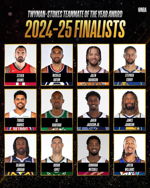 北京时间 4 月 29 日,NBA 勇士队的球星库里正式宣布荣获 24-25 本赛季最佳队友奖。