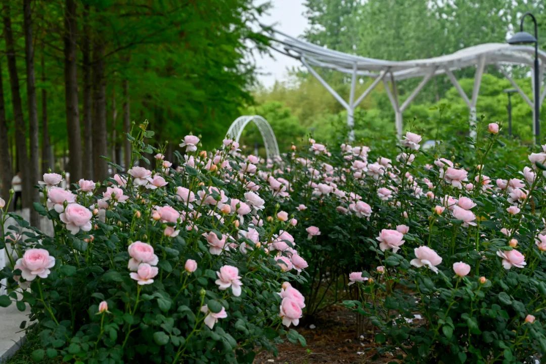 月季是义乌的市花,江滨绿廊月季园占地4万多平方米,是义乌唯一一个以月季为主题的公园。公园里种植了200多种月季。本次活动设置了月季花海、莫奈花园、春季秘制药三大主题景观,以及十多个打卡点和春季市场,如月季爱情、巨玫瑰、花台阶等。,让广大市民在花香中感受春天的美景。