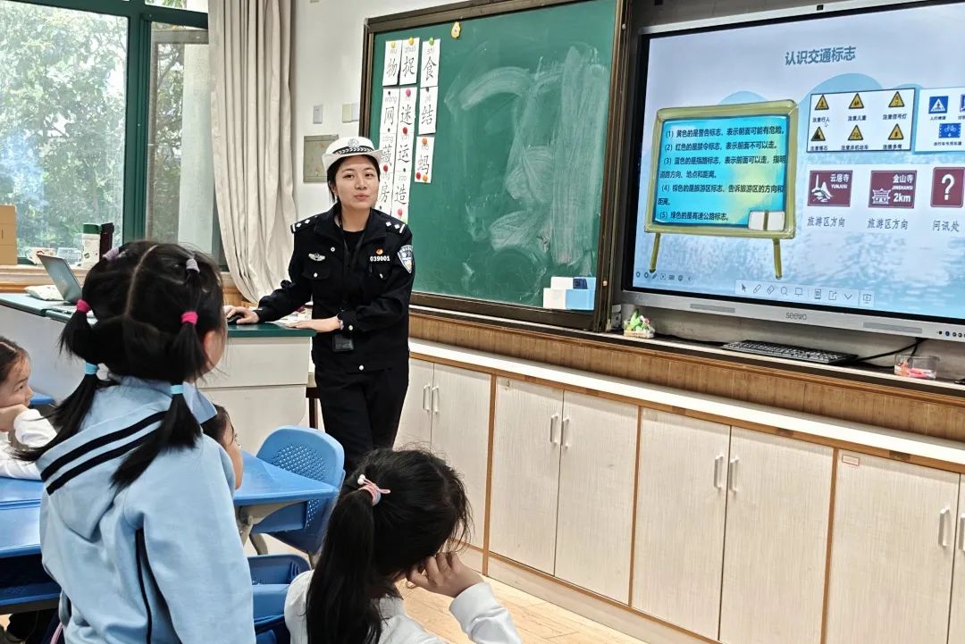 “为什么坐电动自行车要戴头盔?”“如何安全过马路?”面对孩子们的问题,警察耐心地一一回答,并现场演示了交通指挥手势,邀请学生参加模拟演练,加强游戏中的记忆力。“这种沉浸式教学是课后服务所需的高质量内容,既填补了学校专业教师的不足,又让安全教育真正入脑。”学校老师说。